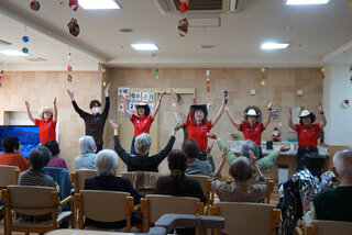 利用者の皆さんも手の振りをしていただき、中には足踏みをしてくださる方も。
