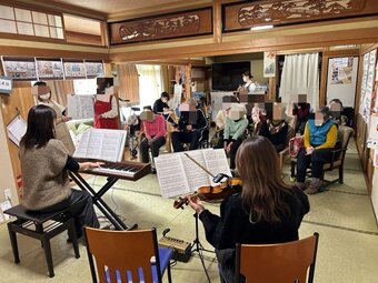 介護施設の訪問、公民館など地域イベントなどで、馴染みのある日本の曲や、やさしいクラシック、ポップス、歌謡曲をギターやバイオリン、キーボードなどで演奏しています。