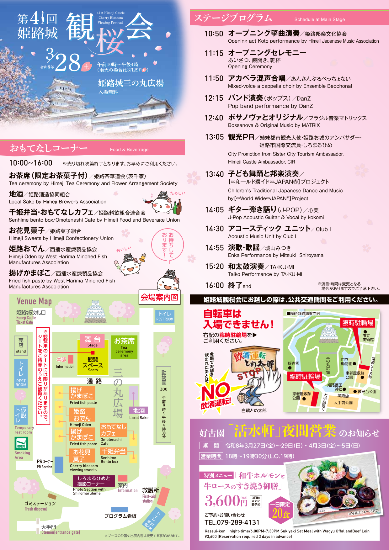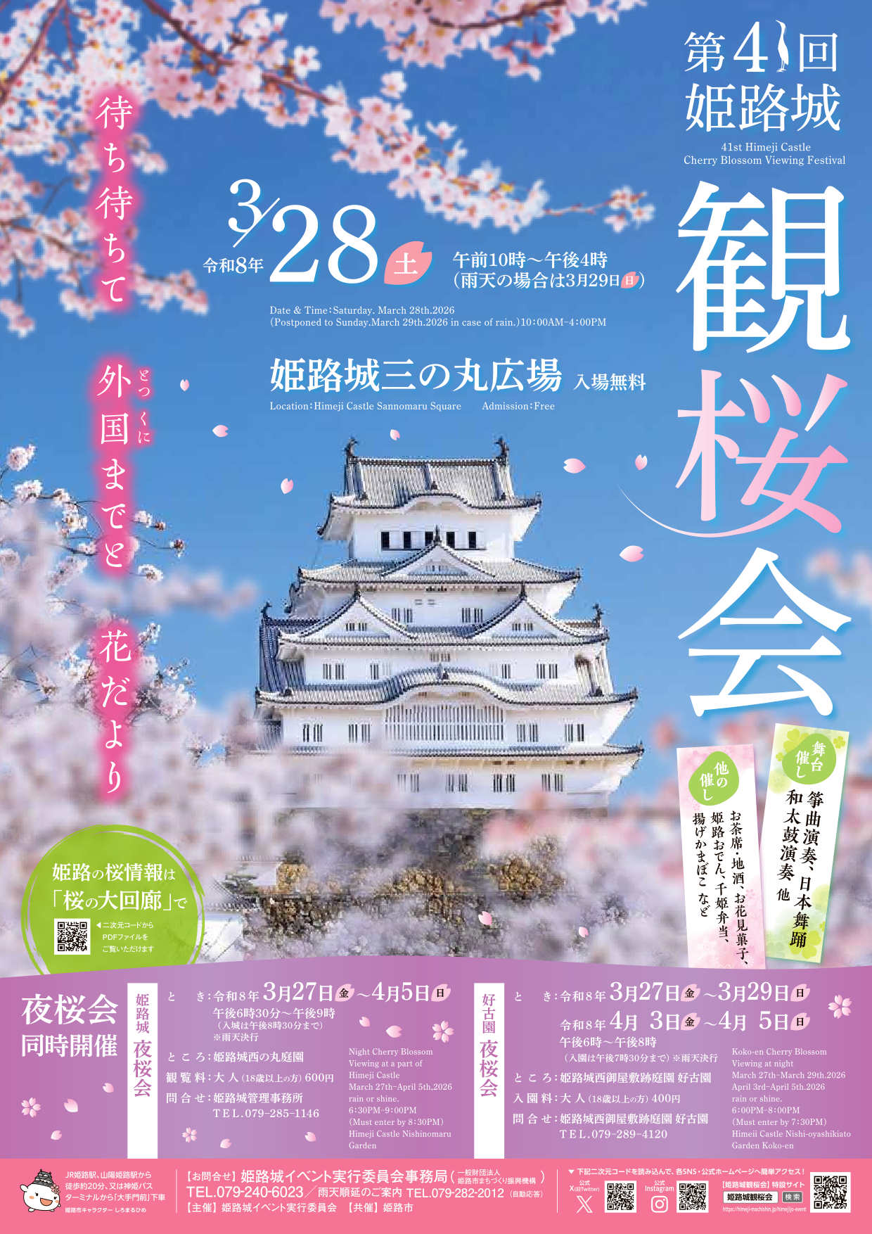 3月28日に開催される、第41回姫路城観桜会への出演が決定しましたのでお知らせします。