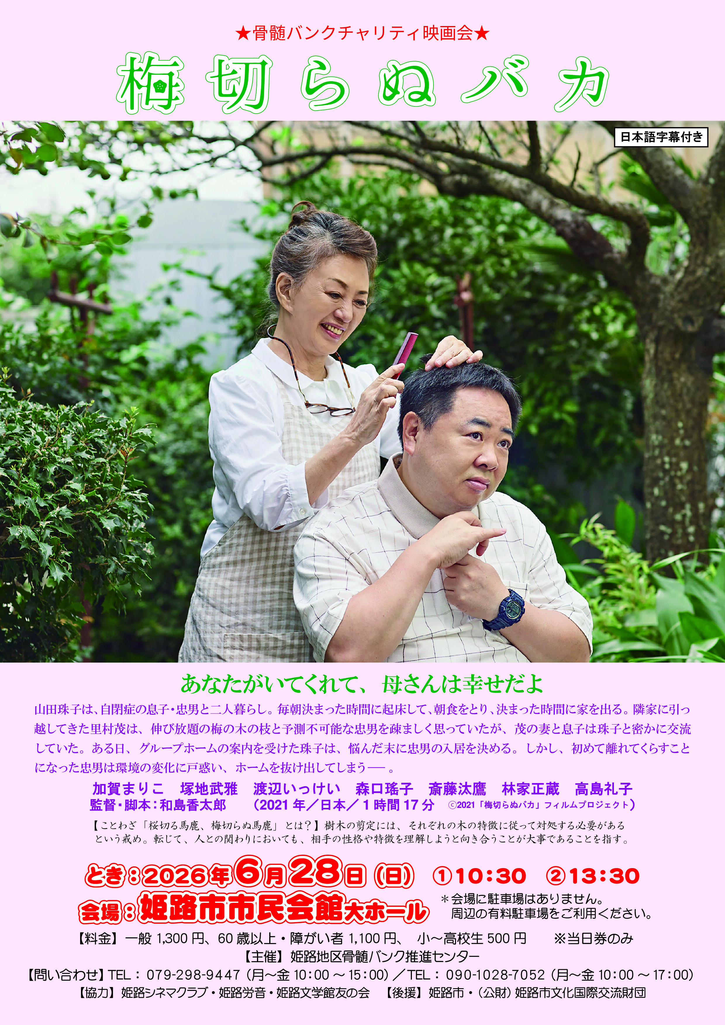 骨髄バンクチャリティ映画会「梅切らぬバカ」