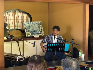 6名の読者の方が参加して下さり、歓談したり、お弁当を食べたり楽しく交流しました。午後からは三線奏者の内山たかひろさんの演奏を楽しみ、一緒に歌ったり踊ったりしました。