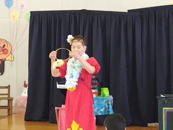 21日(火)は、子育て支援〔にしっ子ひろば〕で安田さん・福永さんが演技をされました。