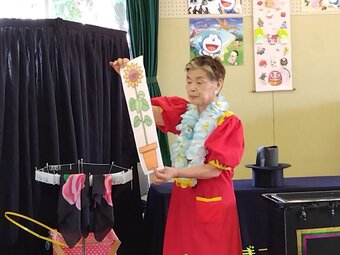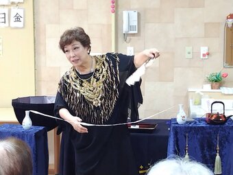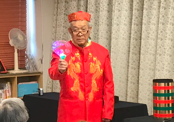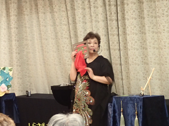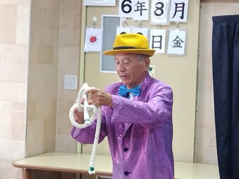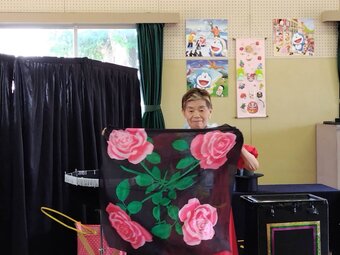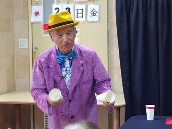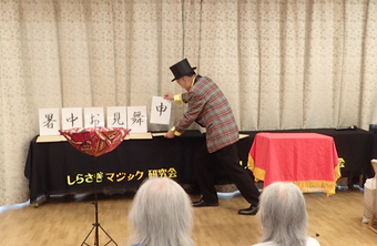 5日(月) デイサービスつどい「マジックショー」で、濵本さん、小林さん、前川さんが演技をされました。