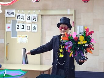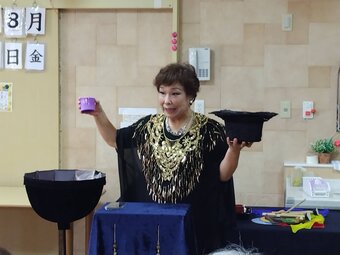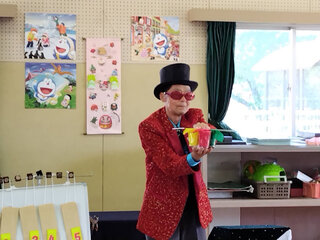 23日(金) デイサービスゆめふる東辻井「マジックショー」で、柳井さん、小林さん、前田さんが演技をされました。