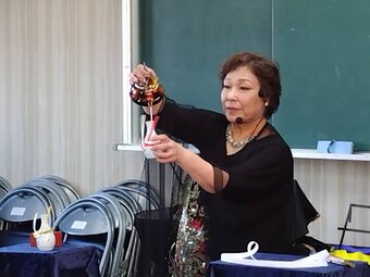 19日(日) (姫路市)勝原区下太田公会堂で、実末さん・小林さん・安田さんが演技をされました。