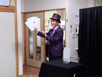 ボランティアマジックの演技をして頂く会員がまだまだ足りません。現在、出演可能な方が18名ですが、女性の会員が少ないので特に女性の方の入会を楽しみにしています。
