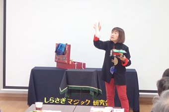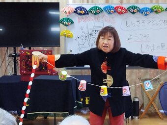 27日(木) (白浜町南住宅集会所) ほほ笑みサロン マジックショーで、木村さん・濵本さんが演技をされました。