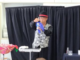 今津さんの演技です[12日:石橋内科3階 マジックショー]