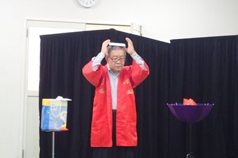 榮藤さんの演技です[13日:石橋内科4階 マジックショー]