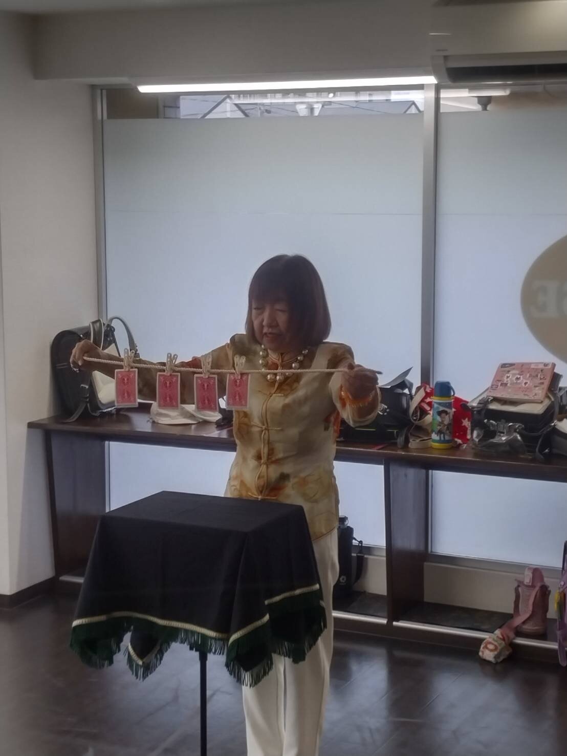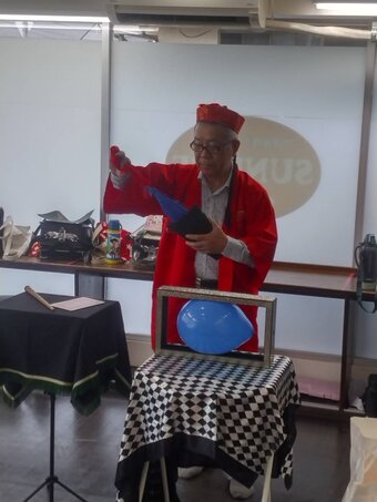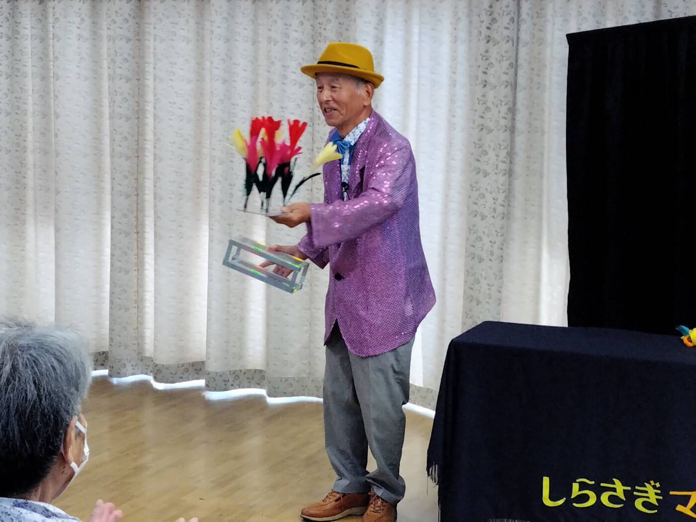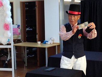 14日(日) 城見台2丁目自治会集会所で、小林さん・濵本さんが演技をされました。