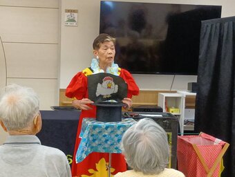 19日(金) (高砂市)ディサービス鹿島の郷で、長重さん・小林さん・濵本さんが演技をされました。