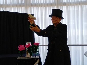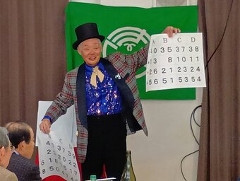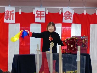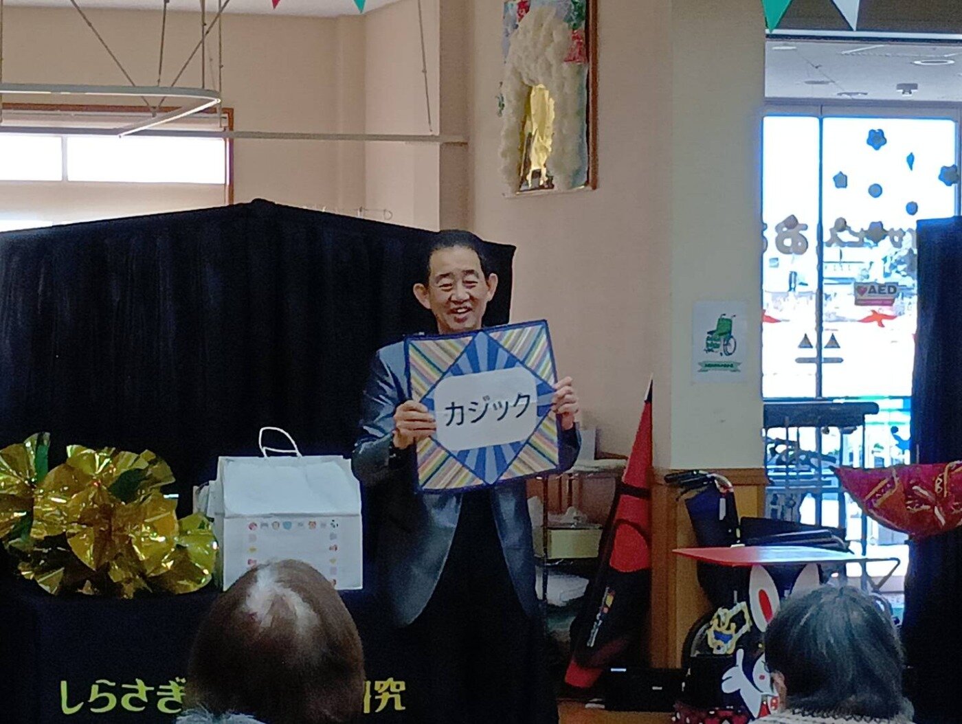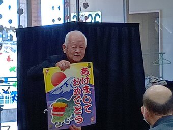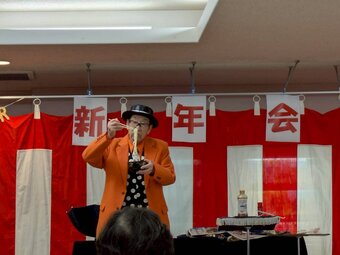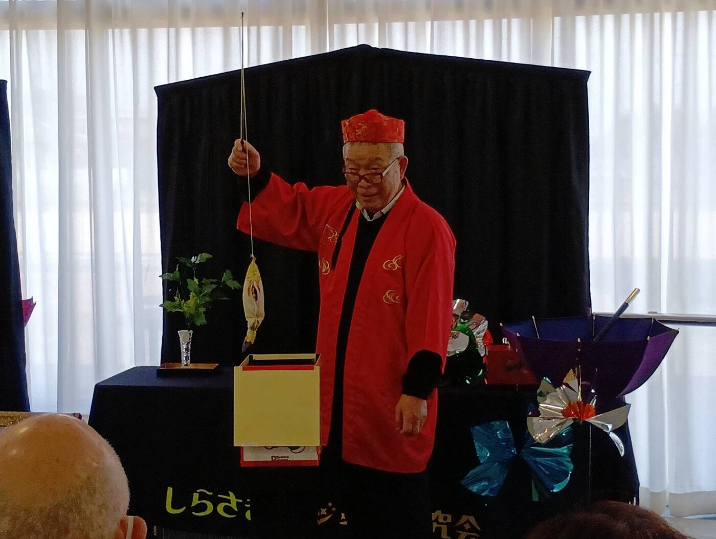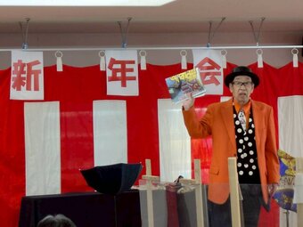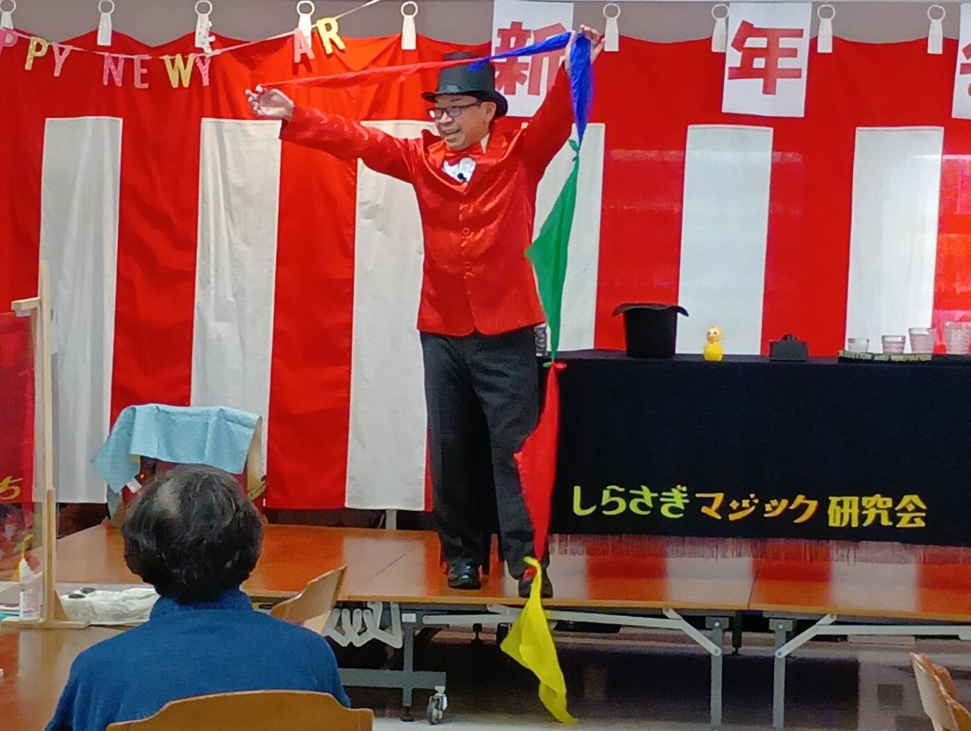 濵本さんの演技です[25日:(桜ヶ丘自治会館)新年会]