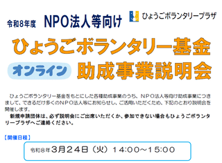 ( ひょうごボランタリープラザ)令和8年度 NPO法人等向け ひょうごボランタリー基金助成事業説明会の開催